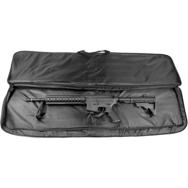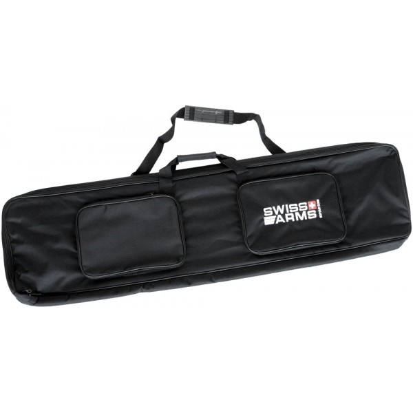 GEANTA SWISS ARMS PENTRU TRANSPORT PUSCA. MATERIALUL ESTE TIP CORDURA, GEANTA ARE 2 BUZUNARE MARI LA EXTERIOR (PENTRU TRANSPORTUL ACCESORIILOR, BILELOR, ETC), IAR LA INTERIOR ESTE CAPTUSITA CU BURETE SI ARE SISTEM DE FIXARE A ARMEI