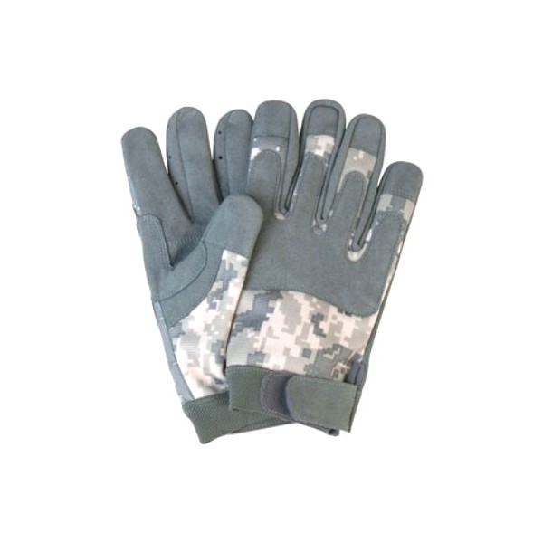 MANUSI TACTICE CAMUFLAJ ACU AT-DIGITAL, DE LA MILTEC GERMANIA. SUNT CONFECTIONATE DIN PIELE SINTETICA IN DUBLU STRAT (PENTRU REZISTENTA) SI SPANDEX / ELASTAN (PENTRU ELASTICITATE) SI CAPTUSEALA SPUMA EVA. PRINDEREA PE INCHEIETURA MAINII SE REALIZEAZA PRIN SISTEM DE ELASTIC CU ARICI (VELCRO / SCAI)