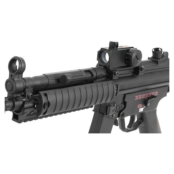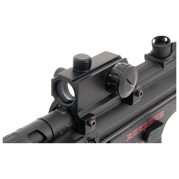 DOT SIGHT PENTRU PUSTI DE ASALT MP5, FABRICAT DIN METAL, CU ILUMINARE A PUNCTULUI IN ROSU SAU VERDE SI MAI MULTE INTENSITATI ALE ILUMINARII. LOGO WALTHER