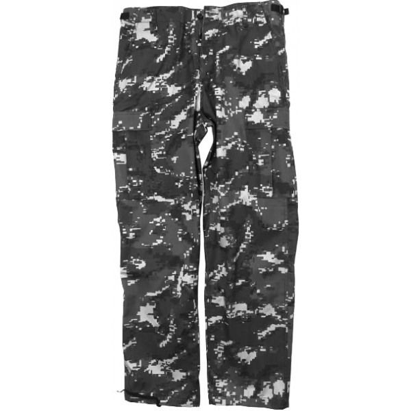 PANTALONI BDU U.S. RANGER, CAMUFLAJ BLACK DIGITAL (VERSIUNEA MARPAT URBAN). DISPUN DE 6 BUZUNARE INCAPATOARE (2 SPATE, 2 TALIE, 2 GENUNCHI), IAR TALIA ESTE AJUSTABILA. COMPOZITIA MATERIALULUI ESTE 80% POLIESTER SI 20% BUMBAC