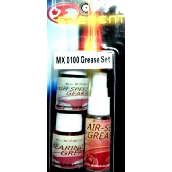 ELEMENT GREASE SET CONTINE O COMBINATIE DE RECIPIENTE CU VASELINA SILICONICA IN DIVERSE GRADE DE VASCOZITATE, SPECIALE PENTRU LUBRIFIEREA ANGRENAJELOR SI MECANISMELOR LA ARME AIRSOFT CU PROPULSIE ELECTRICA (A.E.G. AIRSOFT ELECTRIC GUN)