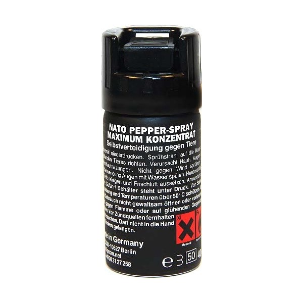 Toate tipurile de spray cu gaze iritant-lacrimogene comercializate pe acest site sunt originale, fabricate in Germania. Nu comercializam sprayuri contrafacute ! (Da, exista sprayuri iritante si lacrimogene contrafacute, in special copiate dupa sprayurile NATO, iar continutul acestora poate avea o concentratie foarte scazuta de substanta activa sau aceasta poate chiar lipsi cu desavarsire si veti pulveriza doar aer spre atacator)