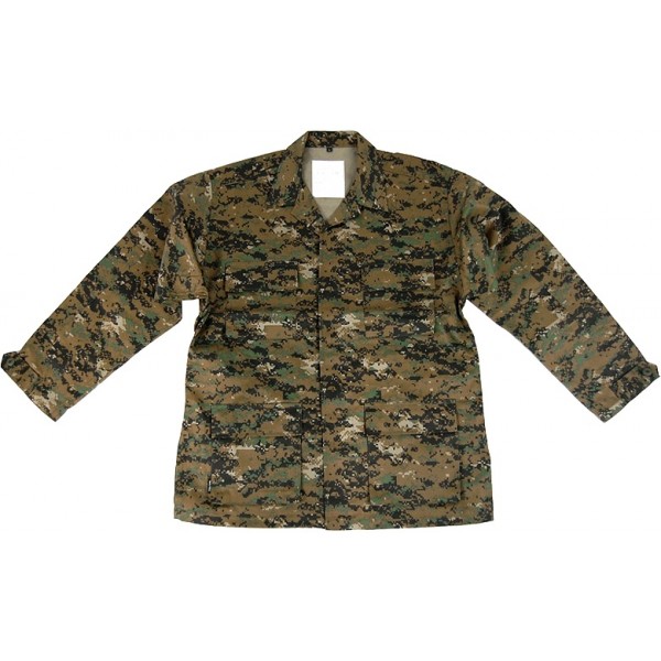 VESTON MILITAR CAMUFLAJ DIGITAL WOODLAND (MARPAT – MARINE PATTERN), CU MANECILE DUBLATE IN ZONA COATELOR, 4 BUZUNARE SI INCHIDERE CU NASTURI